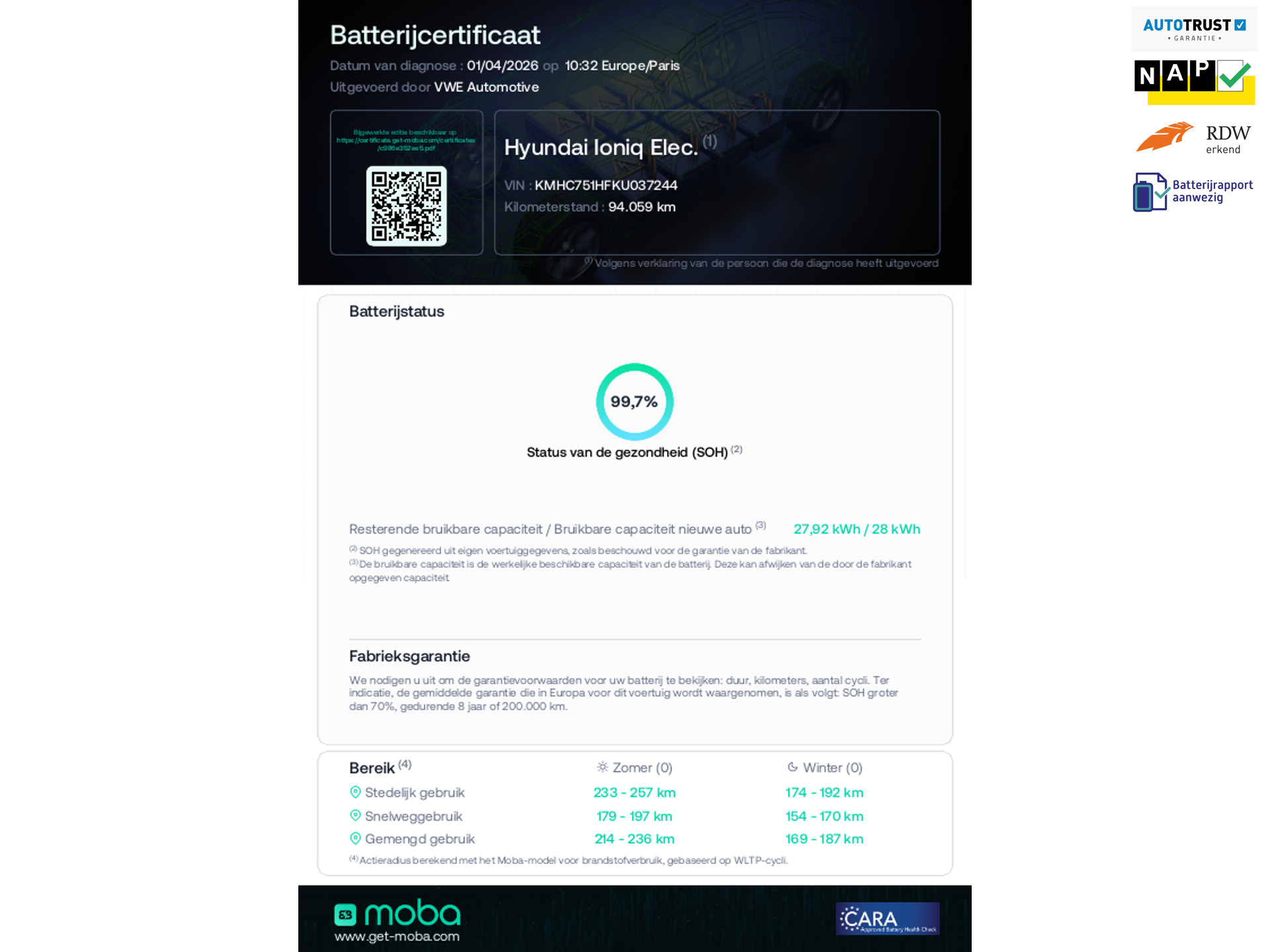 Comfort EV, SOH waarde 99,7 %, achteruitrijcamera, navigatie, vele opties, Origineel NL auto met nap